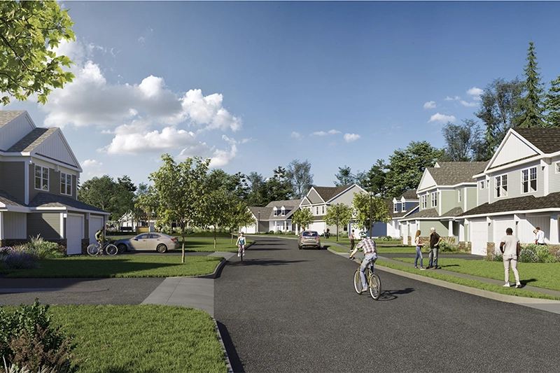 The individual units range from 1,680 square feet to 2,300 square feet consisting of three and four-bedroom residences. The cape-style single family homes feature a first-floor primary bedroom.