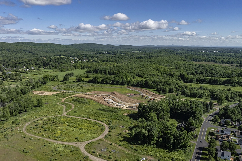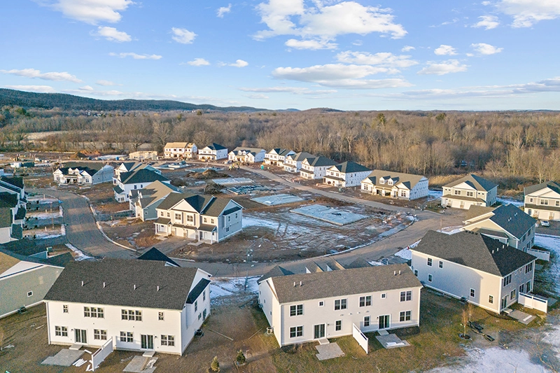 Residents enjoy spacious three- and four-bedroom layouts with private patios, attached garages, and options for first- or second-floor primary bedrooms. Beyond the homes themselves, the community offers resort-style amenities including a saltwater pool, outdoor sauna, fire pits, BBQ stations, fitness and wellness facilities, private workspaces, and pet-friendly features. Located just minutes from Bradley International Airport, local vineyards, parks, and shops, The Grand Meadows combines modern living with a true sense of community.